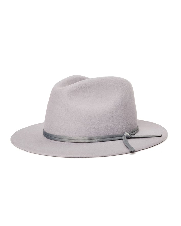 A basic sport wide brim aluminium wool felt hat made by Brixton. Super confortable to wear, easy to fit and this one with stiffened brim making it holding almost flat. It features a skinny cotton band to contrast the grey making it a sporty hat.